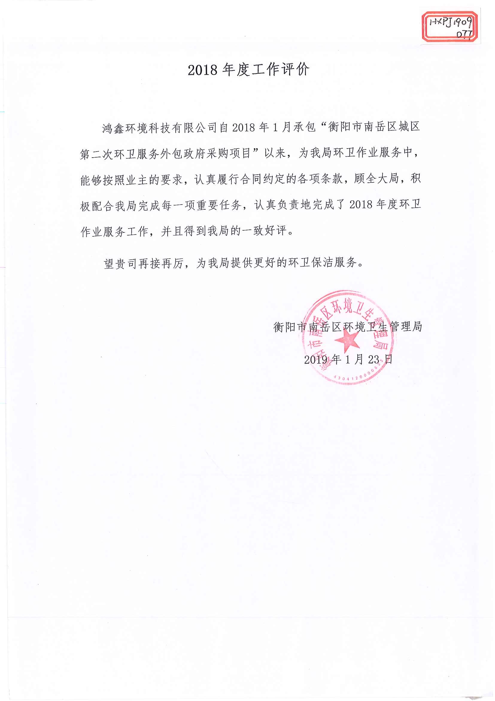 衡阳市南岳区城区环卫服务工作评价(2019年1月)