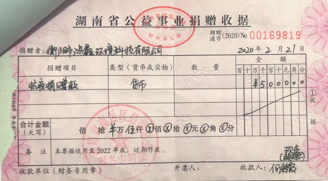 在这场没有硝烟的防疫战中,谁都不是旁观者。国难当头,匹夫有责。防疫抗疫,人人有责,鸿鑫环境在董事长周永忠的带领下,积极响应中央政府和社会组织抗击疫情的号召,充分发挥资金、技术、人才、渠道等各方面优势,踊跃捐款达50万元物资共抗疫情。
